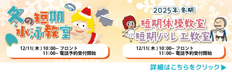 冬の短期水泳・体操・バレエ教室の日程を公開いたしました!詳細はこちらからご覧ください。