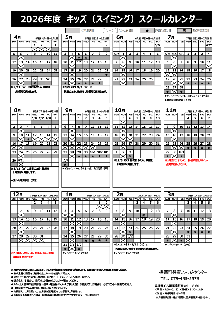 | 〒675-0147 兵庫県加古郡播磨町南大中1-8-60 TEL 079-435-5578 FAX 079-435-5140 指定管理者 |