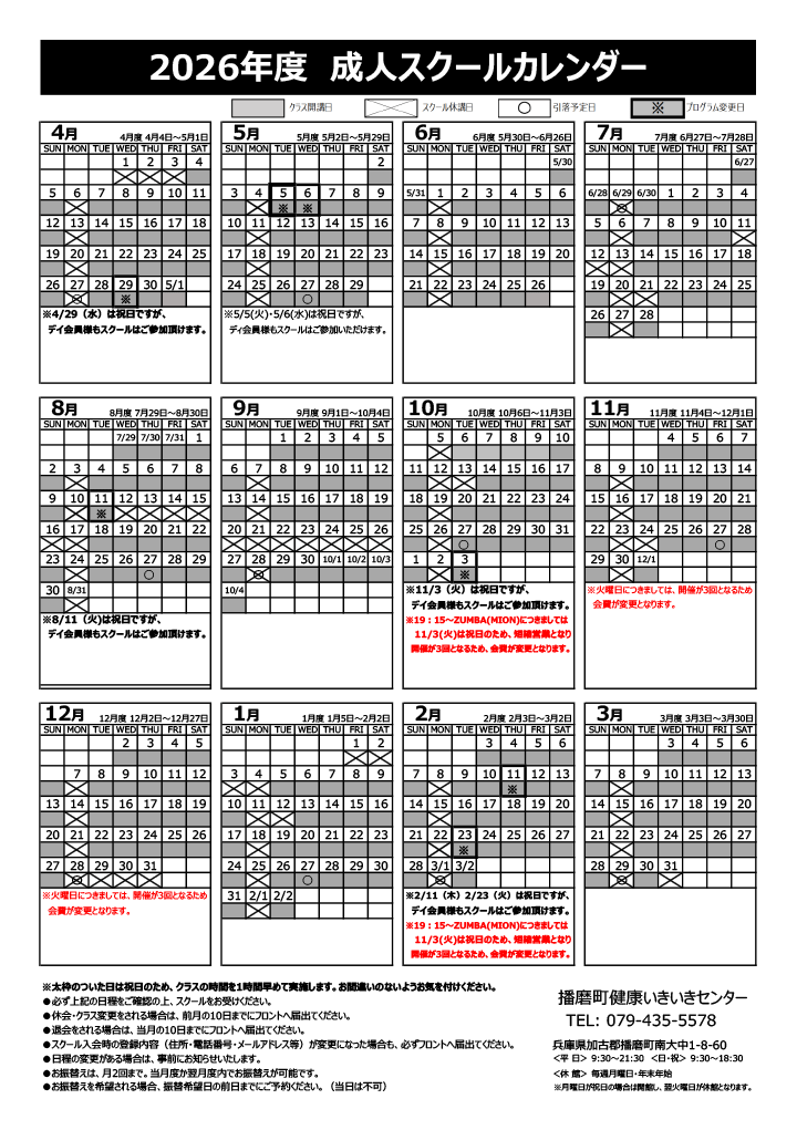 | 〒675-0147 兵庫県加古郡播磨町南大中1-8-60 TEL 079-435-5578 FAX 079-435-5140 指定管理者 |